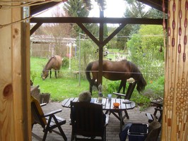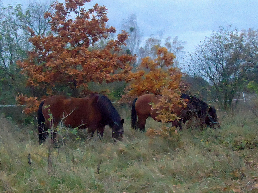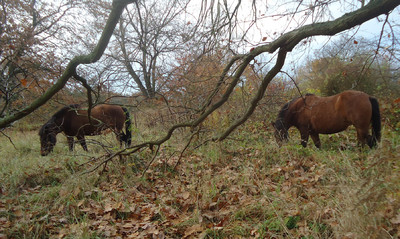 Wir haben zum Camp leider kein Weideland, wir haben eine "Weidelandschaft". Als Ödland ausgewiesene Flächen. ausgesandet, dann mit Schutt und Müll aufgefüllt und mit irgend welchen Aushüben, sehr wellig überdecktes und zufällig bewachsenes Gelände. Ich denke mal, wenn ich sie da stehen und weiden sehe: ...Ihr seit angekommen Huzis.