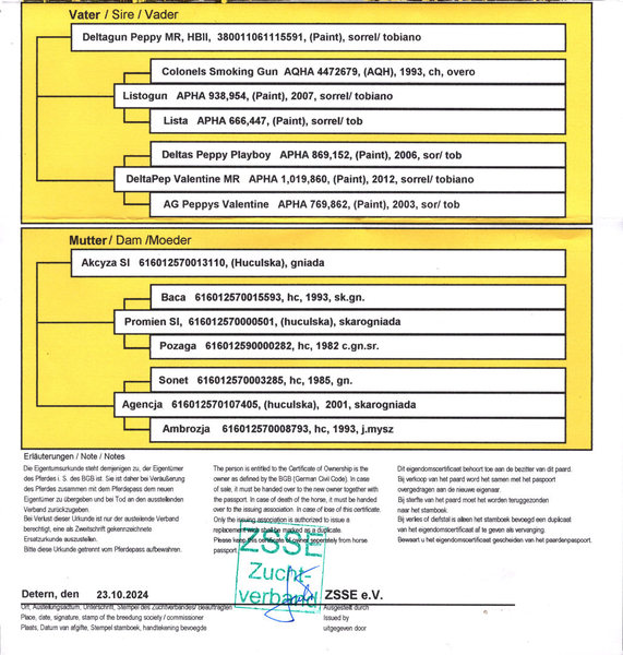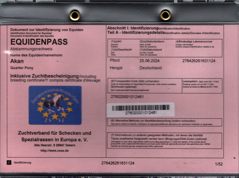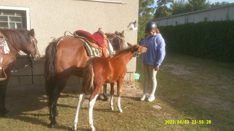 Akan wurde am 26.06.2024 hier am Camp geboren. Die Mutter ist eine Huzulenstute, der Vater ein Quarter bzw. Paint Hengst. Der Pass wird vom ZSSE auf Quarter Pony ausgestellt.